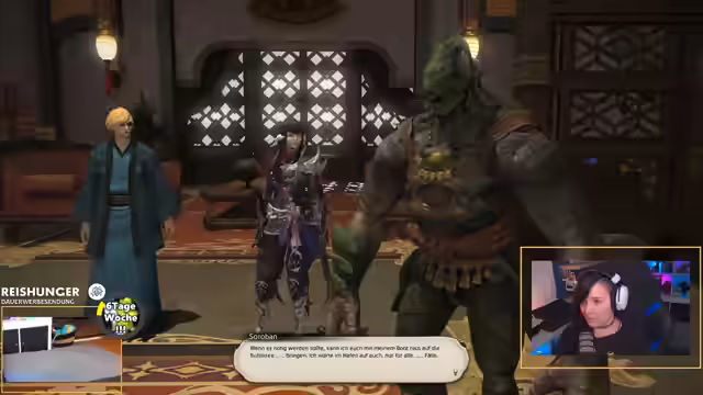 02:34:44Der Stream beginnt mit persönlichen Anspielungen auf andere Streamer wie Hasso und geht dann über zu Diskussionen über Spiele wie Claire Obscure, das als modernes Final Fantasy beschrieben wird. Es folgt eine längere Passage über die Story von Final Fantasy 14, in der die Sultana Nanamo um Hilfe bei der Rückkehr der Flüchtlinge bittet. Looloo schlägt den Salzgarten als Investitionsort vor, und es wird eine strategische Partnerschaft zwischen der Regierung von Uldar und dem reichsten Geschäftsmann Uldars, Looloo, geplant.