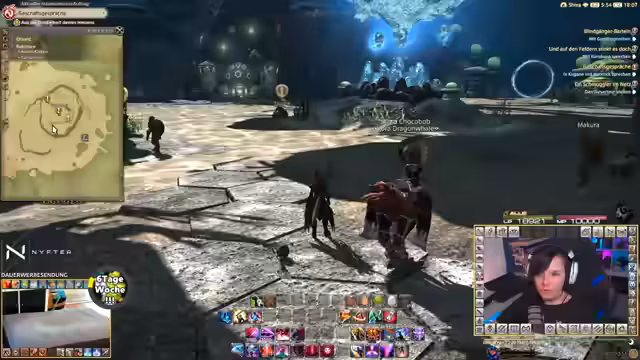 01:19:09Es kommt zu einem kurzen technischen Problem, welches jedoch schnell behoben wird. Das Gameplay konzentriert sich darauf, eine komplexe blaue Quest zu finden und abzuschließen. Der Streamer navigiert durch verschiedene Unterwasserzonen und versucht, mit einem Chocobo die letzten Quests zu erreichen, um das Fliegen zu ermöglichen und die Belohnung zu erhalten.