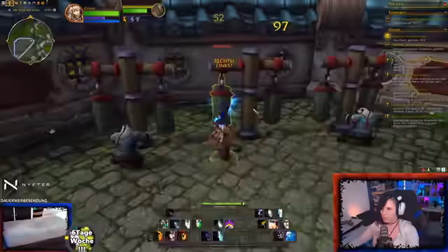 02:31:19Die Aktion findet im Gebiet Mogu'Shan statt, wobei der Streamer gegen Gegner der Allianz kämpft und verschiedene Quests bearbeitet. Es werden wiederholt Gegner wie Ghule, Schatten und Kapitän Doran eliminiert, wobei besondere Fähigkeiten wie Schatten-Tentakel eingesetzt werden. Der Fokus liegt darauf, feindliche Eliten zu töten und Quests abzuschließen. Dabei wird auf die Spielmechanik eingegangen, etwa dass bestimmte Fähigkeiten aufgeladen werden müssen, um Gegner effektiv bekämpfen zu können.