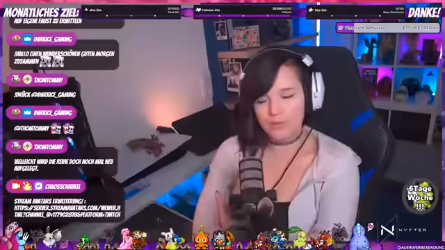 01:22:23Nachdem die Streamerin mit ihren Zuschauern über ihre Lese- und Seriengewohnheiten gesprochen hat, wechselt sie zum Gaming-Teil des Streams. Sie bittet die Chatmitglieder um Feedback, welche Spielrichtung sie einschlagen soll. Sie verkündet, wieder mit einem Paladin in World of Warcraft weiterzumachen. Außerdem erwähnt sie, dass sie sich nach einer längeren Pause wieder dem Spielen gewidmet hat und dies wieder Freude bereitet. Der Ton ist gelassen und sie begrüßt die Zuschauer herzlich, bevor sie in das Spiel eintaucht.
