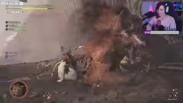 04:11:51Es wird festgestellt, dass ein Riesenschnabel für die Kutku-Rüstung fehlt, der durch das Zerstören des Schädels erhalten werden kann. Da niemand mehr den Affenhelm benötigt, plant die Streamerin, in der Open World ein Dreier-Rudel zu jagen. Sie erklärt, dass sie zunächst nur die Alpha-Rüstung herstellen wird, um Ressourcen zu sparen, und später bei Bedarf die Beta-Variante farmen kann. Eine gehärtete Kutku-Quest wird erstellt, und andere Spieler sind eingeladen, mitzumachen. Die Streamerin wechselt ihre Ausrüstung, um mit dem passenden Hammer auf den Kopf des gehärteten Kutku zu zielen. Ein Zuschauer benötigt Flügel, woraufhin die Strategie angepasst wird, um diese zu farmen. Die Streamerin bemerkt, dass ihre Ausdauer- und Lebensbalken am PC pixelig dargestellt werden und fragt sich, woran das liegt. Es wird darüber gesprochen, dass man Flügel vom Töten des Monsters bekommen kann, aber selten.