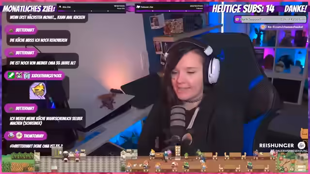 00:54:23Der Streamer berichtet über den Gesundheitszustand seines Hundes Rita, der aufgrund einer schlimmer gewordenen Pfote behandelt wird. Die Behandlung umfasst ein Fußbad nach jedem Spaziergang und das Verbot, die Pfote zu lecken. Auch die aktuelle Witterung und Heizsituation in der Wohnung wird thematisiert. Zudem geht der Streamer auf Renovierungsarbeiten in der Küche ein und erwähnt, dass die neue Küche viel Arbeitskraft, aber auch große Zufriedenheit gebracht hat.
