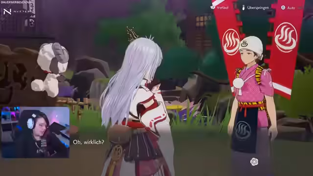03:21:19Nachdem das Intro gespielt wurde, reist der Streamer mit seinem Drachen durch die Lüfte über die Welt Azuma. Er landet auf einer fliegenden Insel und erkundet eine Kampfzone, die an frühere Erlebnisse erinnert. Diese neue Umgebung bietet ihm neue Ressourcen und größere Statuen, und die Herausforderung erhöht sich durch die Einstellung auf einen höheren Schwierigkeitsgrad. Er verlässt das Dorf, um weiter zu erkunden und neue Möglichkeiten zu finden.