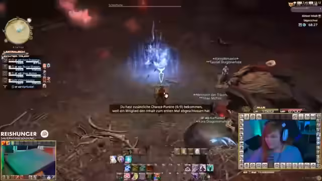 02:32:13Die Streamerin setzt ihre FF14-Session fort und konzentriert sich auf die Freundesvölker, insbesondere die Knarff und Wano Wano. Sie erwähnt, dass sie fast Level 8 bei Schokobob erreicht hat und plant, die Silfen zu maximieren, um sie nie wieder machen zu müssen. Die Streamerin spricht über die Schwierigkeit, die Base-Game-Stammesvölker hochzuleveln, freut sich aber auf die Addon-Völker, da diese schneller gehen. Sie drückt ihre Freude darüber aus, dass sie jetzt tauchen kann und plant, die Unterwasserwelt zu erkunden. Die Streamerin hat ihren Schokobob angepasst und ist zufrieden mit seiner Farbe. Sie erwähnt, dass sie die Gebiete von Haber & Swatch als nervig empfindet, da sie so weitläufig sind. Die Streamerin ist hyped auf Freitag und ihren Friseurtermin morgen. Sie hofft, dass es keine Störfaktoren gibt und dass sie sich richtig schön in das Spiel reinsuchten kann. Die Streamerin spricht über die Herausforderungen, einen Facharzttermin in Deutschland zu bekommen. Sie erwähnt, dass das Update von Gilbos 2 verschoben wurde und dass sie sich darauf gefreut hat. Die Streamerin hat im Moment keine Motivation für Guild Wars 2. Sie freut sich über ein Drachen-Mini-Pad. Die Streamerin begrüßt neue Zuschauer und kündigt den vorerst letzten Double-Stream an.