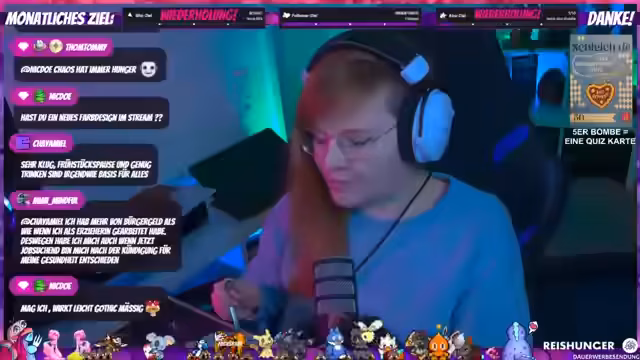 Der Tag von Chaosschaukel umfasste Diskussionen über Handwerkertermine, Baumarkteinkäufe und die Kita-Situation. Es folgten Einblicke in Schul- und Ausbildungserfahrungen. Am Abend standen Spiele wie RimWorld, mit Basis Aufbau, Nahrungssuche und FF14-Quests auf dem Programm. Auch Angeln und Dungeons waren Teil des Programms.