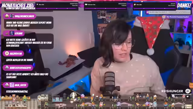 00:16:55Heute streamt der Kanal nur bis 12 Uhr, da um 13 Uhr Besuch erwartet wird. Dies war bei der Erstellung des Streamplans noch nicht bekannt, aber es wird versucht, die verlorenen Stunden an anderen Tagen, wie dem morgigen, nachzuholen. Es wird erwähnt, dass die Nägel lackiert werden sollen, und Dragon darf sich ein bis fünf Farben aussuchen. Der Streamer plant, zu frühstücken und nicht so lange wie gestern zu brauchen. Es wird auch von Plätzchenbacken mit der Schwiegermutter nach einem alten Familienrezept berichtet und dem anschließenden Essen und Kartenspielen. Verschiedene Kartenspiele wie Level 8, Scooter, Elfer Raus oder UNO werden genannt. Es wird auch über das Brettspiel D-Dog gesprochen, welches den Schwiegereltern zu komplex war. Ein Backstream ist nicht geplant, aber ein leichtes Plätzchenrezept könnte im nächsten 12-Stunden-Stream gemacht werden. Es wird über die Renovierung der Kinderzimmertür gesprochen, die nun schneeweiß ist und dem Raum ein neues Aussehen verleiht. Die Tür war zuvor ramponiert und voller Klebereste. Nach dem Einbau der Tür kann nun im Zimmer geheizt und mit den Tapetenarbeiten fortgefahren werden. Es wird auch über den Zustand des Babydrachens berichtet, dessen Herzfrequenz von der Hebamme überprüft wurde und der nächste Frauenarzttermin am 4. Dezember ansteht.