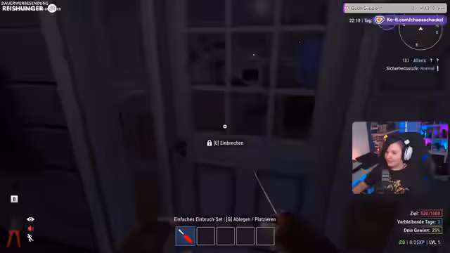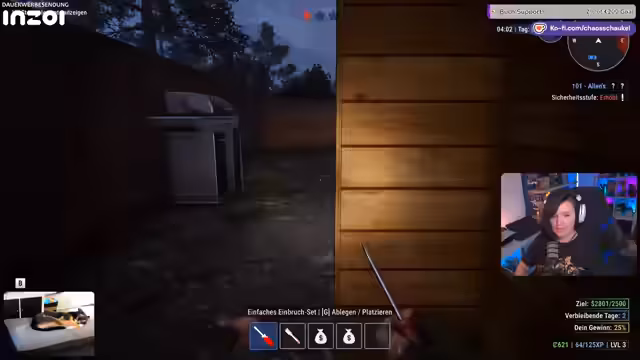 05:36:38Die Gruppe erlebt Rückschläge, einschließlich des Erwischtwerdens und des Sterbens in der neuen, stärker gesicherten Map. Es wird festgestellt, dass die Map mehr Krusch und potenziell wertvolle Gegenstände enthält. Nach dem Entkommen der Polizei wird ein Schlafzimmer mit einer Kamera identifiziert, das als potenzielles Ziel für Diebstahl dient. Die Gruppe stellt fest, dass die Häuser auf der neuen Map kleiner und enger sind, was das Navigieren und Entkommen erschwert. Trotz der Herausforderungen werden Wertgegenstände außerhalb des Hauses platziert, um sie später abzuholen. Es wird festgestellt, dass eine Bewohnerin betrunken ist, was die Situation möglicherweise beeinflusst. Es wird überlegt, wie man in ein Restaurant einbrechen kann, wobei die Notwendigkeit eines Einbruchswerkzeugs und die Schwierigkeit, den Alarm auszulösen, erkannt werden. Die Gruppe passt ihre Strategie an und konzentriert sich darauf, Aufgaben zu erledigen und VIP-Gegenstände zu finden, während sie gleichzeitig die Risiken und Herausforderungen der neuen Map berücksichtigt.