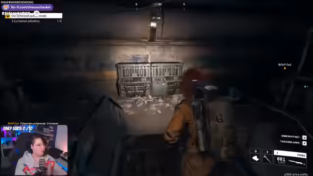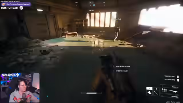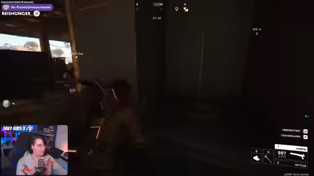 03:14:14Die Streamerin überlegt, ob ihre senfgelbe Kleidung zu auffällig ist, während ihre Mitspieler blau gekleidet sind. Die Gruppe erkundet die Umgebung und findet viel Loot. Eine Luke wird entdeckt, und es wird diskutiert, ob man das Umspannwerk besuchen sollte, um Kabel zu finden, die für eine Quest benötigt werden. Die gelben und roten Spots auf der Karte bleiben immer an denselben Orten. Schüsse sind zu hören, und die Gruppe findet weiteren Loot. Es kommt zu einem Kampf mit Spielern, bei dem die Streamerin getötet wird. Trotz des Todes erhalten die Spieler XP, und es wird betont, dass Sterben zum Spiel dazugehört. Die Streamerin verliert ihre grüne Pumpe und ihre gute Waffe, empfindet den Kampf aber als cool und lehrreich. Sie rettet immerhin einige Kabel.
