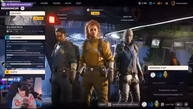 01:47:50Die Streamerin und ihre Mitspieler starten ihre erste Runde in 'Ark Raiders'. Sie lernen schnell die Spielmechaniken kennen, wie das Wiederbeleben von Teammitgliedern mit Defibrillatoren, obwohl die Streamerin zunächst dachte, dies sei nur bei Fremden möglich. Sie entscheiden sich für das kostenlose Start-Loadout, um ihre gesammelten Gegenstände nicht zu verlieren, falls sie sterben. Die erste Map ist Damenschlachtwälder, da andere Maps erst freigeschaltet werden müssen. Während des Spiels entdecken sie Loot-Möglichkeiten und lernen, dass man durch Drücken von 'H' schneller vorankommt. Sie treffen auf andere Spieler, die zunächst freundlich sind, aber die Streamerin und ihr Team bleiben wachsam, da nicht alle Spieler freundlich sein müssen. Die Streamerin bemerkt, dass ihre Anfängerwaffe sehr schlecht ist und lange nachlädt, was das Überleben erschwert. Trotzdem ist sie bereit, die Herausforderungen anzunehmen und das Spiel gemeinsam mit ihren Teammates zu meistern, auch wenn sie als "Shoot-Noob" noch viel lernen muss.