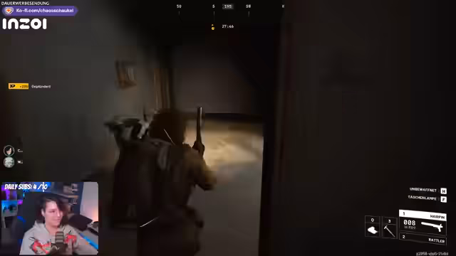 03:53:30Die Gruppe findet einen Lukenschlüssel, der einen speziellen Extraktionspunkt ohne Timer ermöglicht. Die Streamerin findet einen legendären Gegenstand (gelb) und freut sich über den 'Streamer-Bonus'. Es wird überlegt, ob man noch in der gelben Zone looten soll, bevor man den Schlüssel nutzt. Ein Arc wird gesichtet, und die Streamerin versteckt sich, da es an ihrer Tür klingelt. Sie kehrt zurück, und die Gruppe entdeckt eine zerstörte Kamera, was darauf hindeutet, dass bereits andere Spieler dort waren. Ein Zweihandkasten wird gefunden. Es kommt zu einem Kampf mit einem Gegner. Die Gruppe findet weitere Loot-Gegenstände und mittlere Munition. Die Zeit vergeht schnell im Spiel. Es wird eine weitere Energiezelle gefunden. Ein Schützturm wird ausgeschaltet, und Kabel für eine Quest werden gesammelt. Die Gruppe entscheidet sich, den Special-Ausgang zu nutzen, wobei die Luke nach einem Spieler schließt und die Streamerin alleine extrahiert wird. Sie erhält T-Mans für die Luke.