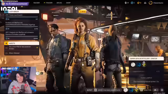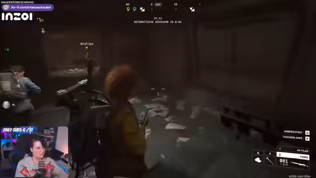 02:22:04Der Stream beginnt mit der strategischen Erkundung einer Karte. Das Team nutzt Deckung und Buschwerk, um von Gegnern, den sogenannten Args, unentdeckt zu bleiben. Es wird eine Roboter-Falle entdeckt, die man aus der Weite zerstören sollte. Nach dem Betreten eines Gebäudes durch den Fahrstuhl wird das erste Loot eingesammelt. Der Chat wird um Hilfe gebeten, um wichtige Gegenstände für Quests von wertlosem Inventar zu unterscheiden. Die Funktion des "Rucksacks auspacken" wird erklärt, um schneller in der Hocke zu sein, und der Weg zu den Händlern und deren Kliniken wird gezeigt.