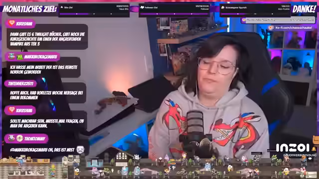 00:33:06Die Streamerin erzählt von einem Ärger mit einem defekten Artikel von Amazon, für den sie die Rücksendungsgebühren nicht zahlen möchte. Nach der Kontaktaufnahme mit dem Support wurde das Problem jedoch geklärt. Anschließend wechselt sie das Thema zu ihrer Lesefreude und ihrem Bücherregal, das hauptsächlich aus Horror- und Fantasy-Büchern besteht. Sie erwähnt, dass sie aktuell wenig liest, da sie oft zu müde ist und ihre Lesezeit auf Comics reduziert hat.
