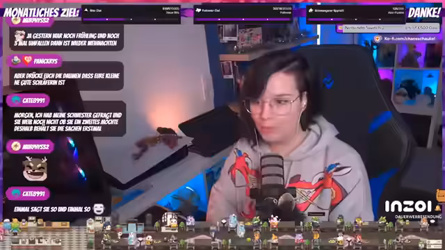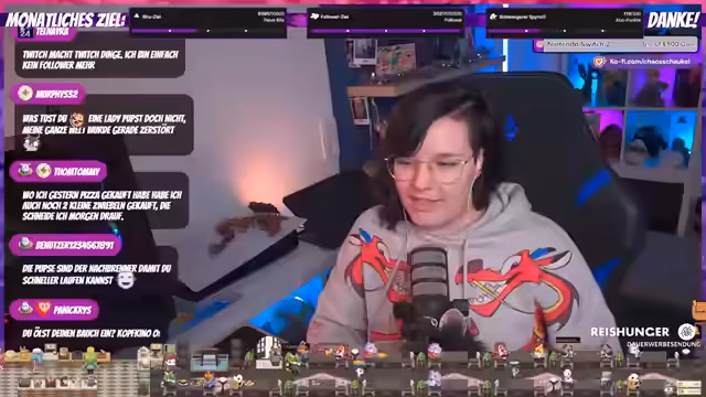 00:16:23Der Stream beginnt mit einem lockeren Smalltalk über das laute Musiksetup. Die Streamerin begrüßt die Zuschauer, berichtet von ihrer schlechten Nachtschlafqualität und erwähnt, dass es bereits Frühstück gibt. Sie geht auf aktuelle persönliche Projekte ein, wie eine Grundreinigung in der Küche und das Leerräumen des Kinderzimmers, in dem bald ein Gaming-Zimmer für ihren Partner entstehen soll. Der Abschnitt endet mit der Vorstellung ihrer Katze Rita, die momentan viel Hunger hat und deswegen wieder dreimal täglich gefüttert wird, um Magenprobleme zu vermeiden.