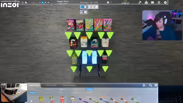 03:13:53Der Streamer richtet speziell ein Süßigkeitenregal ein, um Kunden anzulocken. Er kauft verschiedene Sorten wie Jelly-Candies, Bonbons und Lakritze und platziert sie im Regal. Das Bestellsystem des Spiels lobt er als sehr angenehm und simpel zu handhaben. Er füllt das Regal auf und stellt fest, dass Süßigkeiten eine gute Strategie sind, um Kunden in den Laden zu locken, besonders männliche Käufer.