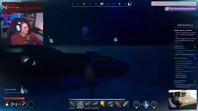04:09:27Auf der Erkundungsreise wird ein kleiner Hirtengeist gerettet, der sich in Gefahr befindet. Dabei werden Werkbänke und Ressourcen benötigt. Der Streamer stellt fest, dass Waffen schnell ihre Haltbarkeit verlieren und improvisiert mit gefundenen Materialien neue Ausrüstung. Die Geister dienen als Begleiter und bieten heilende Fähigkeiten.
