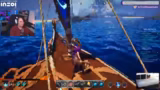 02:35:35Die Spieler starten eine Bootfahrt zu einer versunkenen Ruine. Das Steuer des Bootes wird als schwierig zu bedienen beschrieben, wobei man gegen den Wind steuern muss. Die Erkundung unterwasser wird als interessant dargestellt, jedoch wird die Notwendigkeit besserer Ausrüstung wie Speeren oder Bögen erwähnt. Es werden verschiedene Gegner wie Fische und Tieflingse Wesen bekämpft.