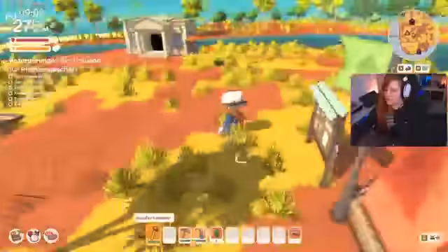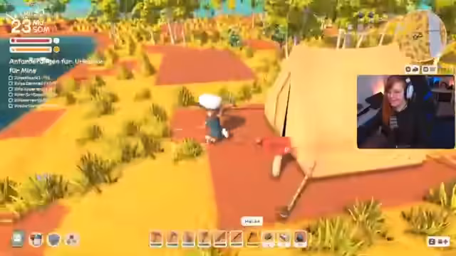 04:42:05Es wird bedauert, dass keine Wohnhäuser für andere Charaktere gebaut werden müssen. Ein Krokodil wird attackiert, um dessen Fleisch zu erhalten, wobei der Buddy im Spiel aktiv zur Jagd angehalten wird. Kurz darauf wird ein Frosch getötet und über mögliche Wohnmöglichkeiten der NPCs, wie Häuser, Buden oder Shops, spekuliert. Der Streamer wünscht sich eine Gießkanne für die Landwirtschaft, um Saatgut und Werkzeuge lagern zu können.
