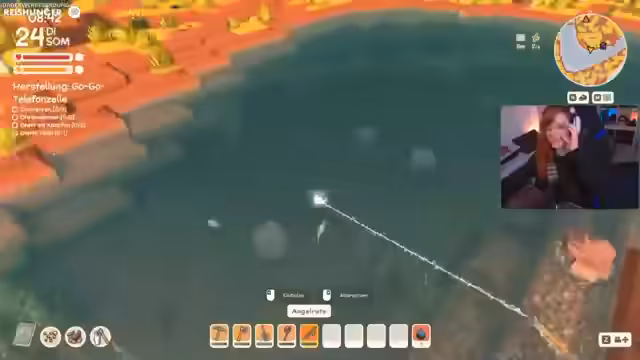 04:34:08Der Streamer versucht vergeblich, am Angelwettbewerb teilzunehmen, da er keine Fische eintragen kann und der Wettbewerb erst um 16 Uhr endet. Trotzdem erreicht er durch den Verkauf von Fischen 87.000 Gold. Anschließend möchte er die Mine bauen, die 250.000 kostet und die Stadt in die Schulden treibt. Er beschließt, sie trotzdem zu bauen, um an neue Ressourcen zu kommen und schaltet die Baugenehmigung dafür.