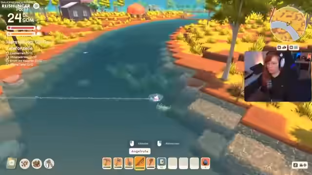 04:46:21Die Interaktion mit dem Chat wird als 'gemein und hinterhältig' beschrieben, im Gegensatz zu einer früheren, schüchternen Phase. Ein Angelwettbewerb steht an, bei dem man unsicher ist, ob die gewonnene Angel behalten werden darf. Es wird gefragt, wohin die Fische gelagert werden können, da dies anscheinend nicht möglich ist. Die Angeln werden als fast kaputt beschrieben und ein großer Fisch wird verfolgt.