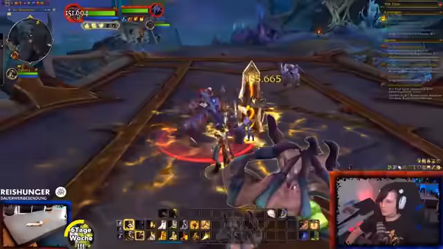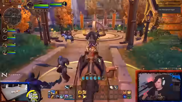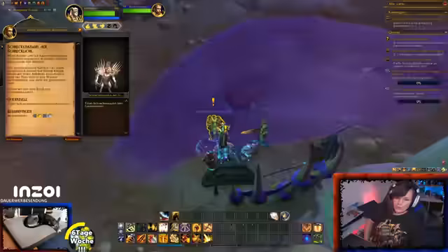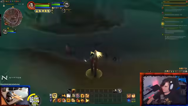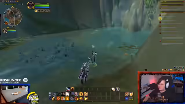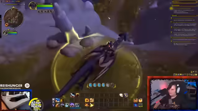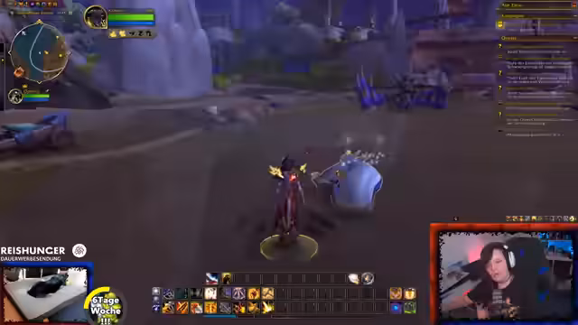06:35:28Es wird eine offene Gilde für beide Fraktionen (Allianz und Horde) angekündigt. Zuschauer können ihren Charakteramen und Server im Chat angeben, um eingeladen zu werden. Der Streamer spielt einen Paladin, den er angenehm für den Solo-Spieler findet, und erwähnt, dass er aufgrund der geringen Gildenaktivität bei der Allianz nun auch seinen Hordler aktiv spielen möchte. Der Fokus liegt darauf, aktuelle Quests im Gebiet 'Web' abzuschließen, unter anderem müssen Dorfbewohner vor einem Bombardement gerettet werden.