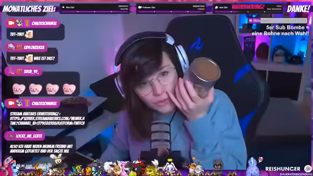 01:39:51Die Streamerin findet, dass die Stadt Apokalypse-Vibes hat, wenn sie dreckig eingestellt ist, und dass dies gut zu Vampiren oder Zombies passen würde. Sie bearbeitet Beschwerden am PC und springt vor, da die Tätigkeit bekannt ist. Sie legt sich auf eine Bank, um ein Nickerchen zu machen, bis die Pause vorbei ist. Ein Zuschauer spendet und die Streamerin bedankt sich und bietet an, eine Bohne auszusuchen. Sie vermisst alte okkulte Wesen wie Vampire, Werwölfe und Hexen aus Sims und hofft, dass diese als DLCs in das Spiel kommen werden. Sie zieht eine Twisterbohne und bittet den Chat, die Farbe zu erraten. Die Bohne schmeckt widerlich und wird als Schnecke oder Schnodder beschrieben. Die Streamerin vermutet, dass die Bohne verwechselt wurde. Sie erklärt, dass Subs ab einer Fünferbombe reduziert sind und dass Streamer Sub-geil sind, weil sie Emotes im Chat lieben. Sie bedankt sich für Bit-Spenden und erklärt, dass das rülpsende Huhn mit Bits eingesetzt werden kann und dass bei vollem Balken der Messertick startet, bei dem der Chat kostenlos Fuelertick nutzen kann. Sie erklärt, dass es auch eine Buggy-Ekelbohne gibt, die richtig widerlich ist.