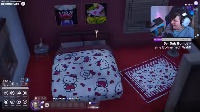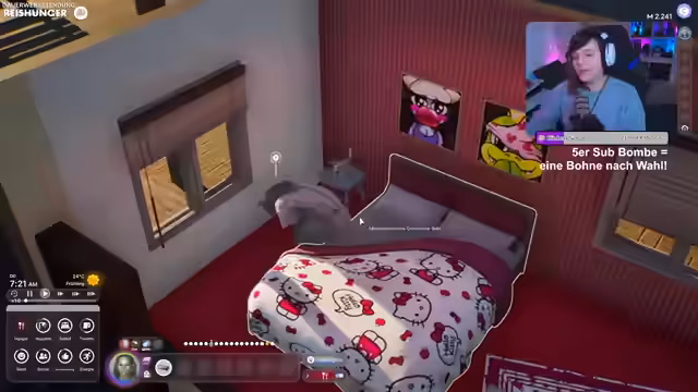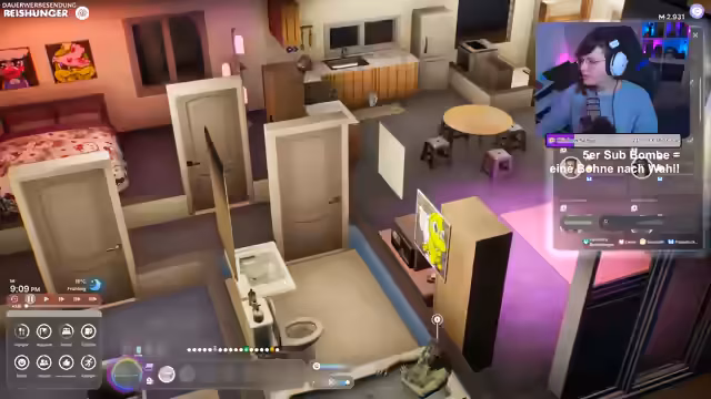 08:44:10Es wird sich gefragt, ob man bei anderen Sims übernachten kann. Detlefs unordentliches Verhalten wird thematisiert, inklusive Zigarettenstummel und anderer Unordnung im Badezimmer. Es wird erklärt, wie der Verkaufsstand funktioniert: Man muss die Theke für Secondhand-Verkauf kaufen, Gegenstände in die Hand nehmen und auf den Stand stellen. Es wird spekuliert, dass Rauchen oder Drogen im Spiel nicht vorkommen werden, da es auch für junge Leute spielbar sein soll. Die Vase im Haus wird als süß empfunden. Es wird erklärt, wie die Spielfunktionen durch Ausprobieren und mit Hilfe des Chats entdeckt wurden. Der Streamer äußert sich zu einem Streit und betont, dass es ihm gut geht. Der Tod eines Telefonbuchkontakts wird thematisiert und auf zukünftiges Geister-Gameplay hingewiesen.