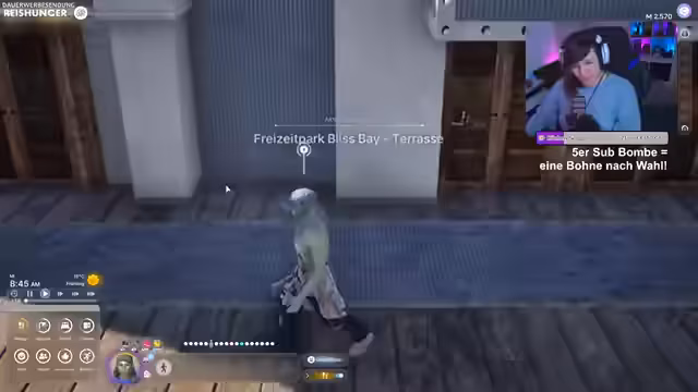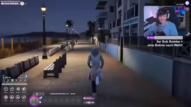 08:38:22Es wird überlegt, ob sich ein Abo für 20 Euro pro Monat lohnt, besonders für anspruchsvolle Spiele oder wenn die Grafikkarte nicht ausreicht. Der Verkauf von Gegenständen im Spiel wird thematisiert, wobei festgestellt wird, dass Detlef (der Charakter) beliebt ist und leicht Freunde findet. Kanalbelohnungen werden vorgestellt, darunter ein Follow auf Canvas oder das Ansehen von Canvas-Sachen im Stream. Schuhe werden ins Schlafzimmer gestellt und es wird Wasser geholt. Der Plan, Essen zu bestellen, wird erwähnt. Es wird überlegt, wie gut man Level verkaufen kann, aber aktuell werden Geschenke als gute Einnahmequelle angesehen. Die Steuerung von Autos mit WSD wird als cool empfunden. Es wird nach der besten Geldmaschine im Spiel gefragt und überlegt, ob man Bilder am Grundstücksrand verkaufen könnte.