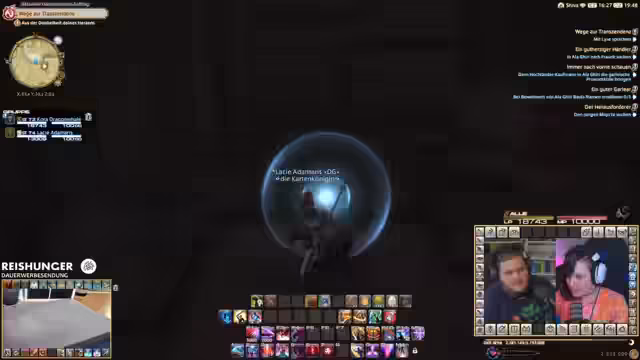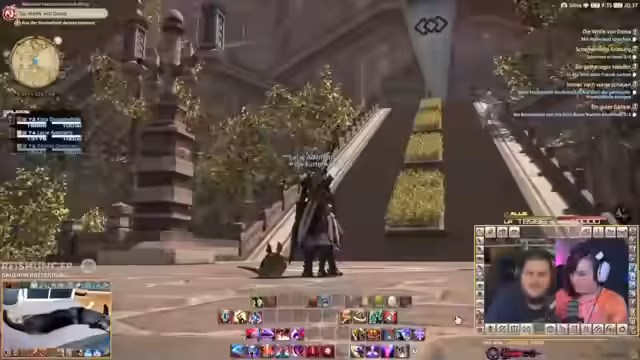 01:26:12Endlich ist der Co-Streamer Sora live und beide können beginnen. Zuvor jedoch stehen noch tägliche Pflichten an: das Öffnen der Glücklose und ein Chocobo-Rennen. Nach diesen formalitäten geht es mitgeteiltem Chat in das eigentliche Finale. Die Stimmung ist gespannt, aber der Fokus liegt darauf, die epische Story von Stormblood gemeinsam zu erleben und den finalen Raid zu bestreiten.