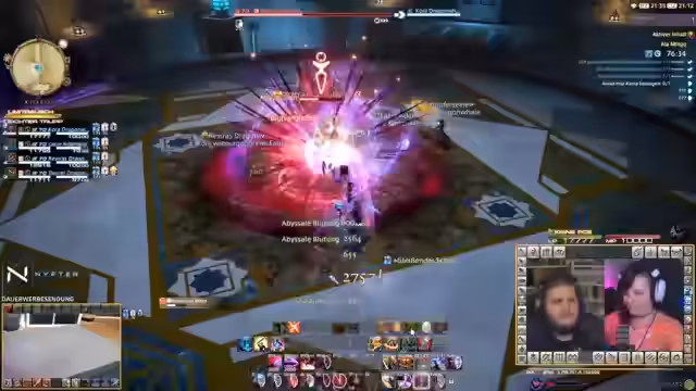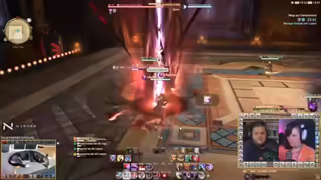 04:25:09Das Stream-Duo stellt sich dem finalen Bosskampf gegen Zenos innerhalb des Stormblood-Add-ons. Der Kampf erweist sich als komplex, da der Boss Debuffs auf die Spieler legt und gleichzeitig mehrere Lebensbalken hat. Die Teammitglieder müssen ausweichen, um den Angriffen zu entgehen, und es kommt zu kritischen Situationen, in denen beinahe alle Spieler sterben. Die Konzentration auf Mechaniken wie Kreise und Schläge ist erforderlich, um den Kampf zu überstehen.