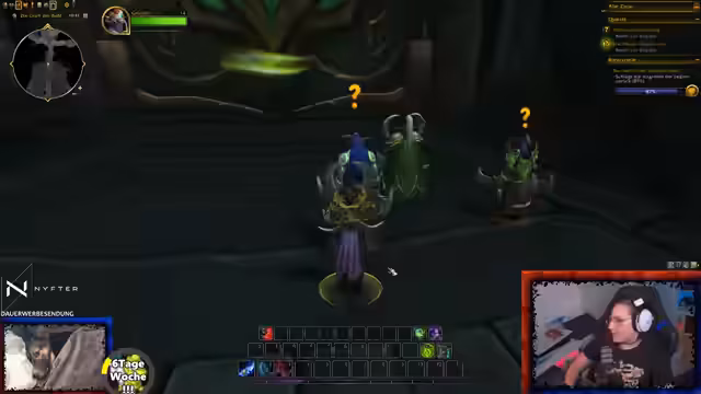 05:06:27Bei der Bearbeitung einer Katalogisierungsquest stellt der Streamer fest, dass diese momentan verbuggt ist, wenn sie durch eine Weltquest überlagert wird. Die Quest muss daher unterbrochen und später fortgesetzt werden. Parallel dazu kommuniziert er intensiv mit dem Chat und erkennt an, dass bestimmte Spielcharaktere, wie die Kul Tirana, einen norddeutschen Dialekt haben, was von den Chat-Mitgliedern bestätigt wird.