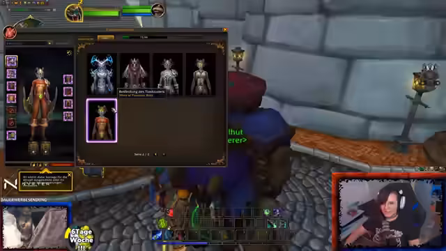 04:47:21Die Streamerin begegnet einem NPC, der sie zur 'Großen Schatzkammer' einlädt. Nachdem sie den Dialog abgeschlossen hat, erscheint eine Quest. Sie versucht, die Schatzkammer zu interagieren, kann sie aber nicht antippen. Sie ist sich unsicher, ob der Vorfall an den Dialog gekoppelt ist oder ob sie bestimmte Voraussetzungen erfüllen muss, wie das Abschließen einer bestimmten Story-Quest oder das Freischalten der Tiefen von Tirisfal. Sie überlegt, ob sie die Quest abbrechen sollte, da sie sie sonst nicht abschließen kann und dies ihr Gameplay blockiert. Der Chat hilft ihr bei der Analyse des Problems und sie beschließt, die Quest erstmal zu liegen zu lassen und weiter mit den anderen Aufgaben fortzufahren.