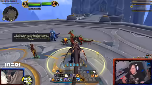 04:24:23Nach einer kurzen Rückkehr aus einer kurzen Pause stellt die Streamerin fest, dass sie bei der optionalen Quest 'Sturm des Zorns' weiter im Gebiet Waldracken festhängt. Sie ist sich unsicher, ob sie diese Quest überhaupt im Gebiet oder nur draußen abschließen kann, und entscheidet sich, sie vorerst zu liegen zu lassen. Stattdessen konzentriert sie sich auf das Bündeln und Beenden der vielen anstehenden Nebenquests im Gebiet. Ihr Questbuch ist voll, was sie dazu bringt, einen Teil der Belohnungen wie Schulterrüstungen auszuwählen. Das Gespräch wendet sich dann einem technischen Thema zu: das Wechseln zwischen dem normalen Flugstil und dem Drachenfliegen. Sie erklärt, dass man wahrscheinlich die Einführungsquest von Dragonflight durchspielen muss, um den Wechsel-Button im Zauberbuch freizuschalten.