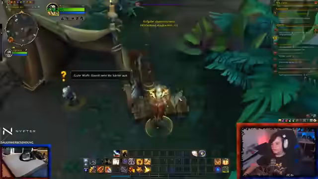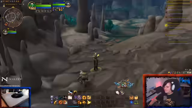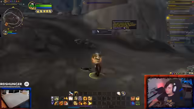 01:05:59Der Stream beginnt mit einem kurzen Ausschnitt aus World of Warcraft. Es werden Probleme mit dem Inventar und der Questverwaltung thematisiert, darunter eine fehlgepinnte Nachricht und ein vollständiger Questlog. Der Fokus liegt auf der Hauptquest, bei der Visionen des strahlenden Gesangs gesichtet wurden, die zu einer Warnung in Silithus führen. Nach Problemen mit der Annahme der Startquest und einem Umweg über die Bank wird der Plan beschlossen, mit Chromie zu sprechen, um die Mission neu zu starten. Der Streamer versucht außerdem, eine Bunny zu einer gemeinsamen Mission nach Silithus einzuladen.