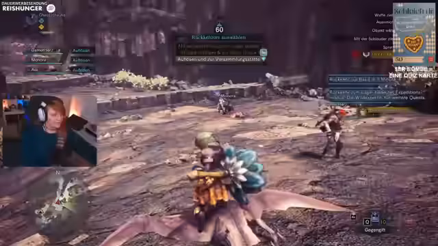 02:13:37Es werden Nebenquests in Monster Hunter World gemacht und geprüft, ob noch Lieferungen offen sind, um diese abzuschließen. Es wird gehofft, dass es in Valz vernünftige Skins geben wird, da das Skinnen in World schwierig war. Es wird eine Quest zum Töten von fünf Banos angenommen, um eine Haut plus zu bekommen, die für den Lageraufbau in einem neuen Gebiet benötigt wird. Es wird erwähnt, dass der Charakter nicht besonders hübsch ist, aber der erste Schall etwas besser gefällt. Es wird nach Banos-Viechern gesucht und festgestellt, dass bereits drei Stück in der Nähe sind. Es wird die Kralle benutzt, um die Banos zu looten und die benötigte Plushaut zu finden. Es wird überlegt, ob vor Weizvlies noch ein paar Waffen durchgetestet werden sollen, dies aber für Weiz aufgehoben. Es wird erwähnt, dass es in der Beta einen Übungsplatz gibt, der für Content mit den Zuschauern genutzt werden kann, um Waffen auszutesten. Es wird bedauert, dass es keine ganz neue Waffe in Monster Hunter World gibt.