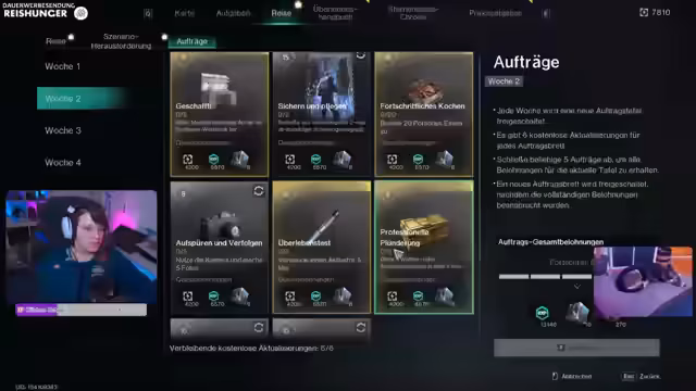 06:36:46Ein Problem mit der Quest 'Zeichnung eines Kontrollpunkts' wird festgestellt, das wahrscheinlich auf ein aktuelles Update zurückzuführen ist, da die Quest vor dem Update funktioniert hat. Versuche, die Quest neu zu starten oder abzubrechen, scheitern zunächst. Die Technik des Streamers wird erwähnt, wie das Ziehen von Updates und der Wecker für einen Friseurtermin am nächsten Nachmittag. Die Quest wird vorerst auf Eis gelegt, um andere Aufgaben zu erledigen, wie das Sammeln eines Ankerpunktes.