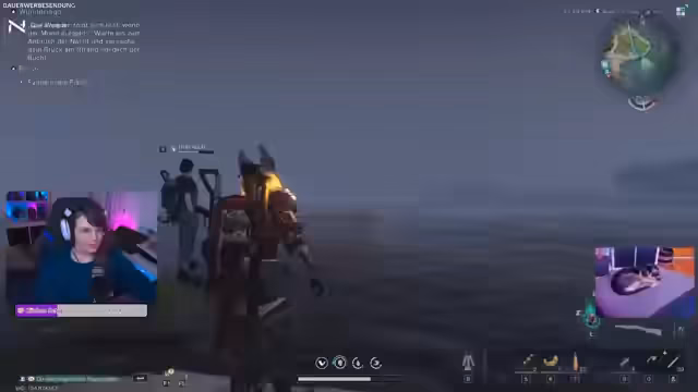 06:53:56Der Streamer erkundet die Spielwelt, sammelt Ressourcen und kämpft gegen Gegner, darunter auch weiße Hasen, die er für Fleisch jagt. Die neuen Fahrrad-Features gelobt, da es schnell, spritfrei und sogar für bis zu sechs Personen nutzbar ist. Die Hasenmaske und der Rucksack aus dem Shop für 99 Cent werden positiv hervorgehoben. Die Suche nach Loot ist erfolgreich, mit mehreren Kisten, die in Häusern gefunden werden, darunter auch Waffen- und Ausrüstungskisten.