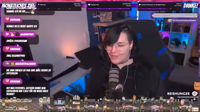 00:32:41Ein wiederkehrendes Thema ist die massive Frustration über eine neue Twitch-Funktion. Ein permanenter, penetrant sichtbarer Balken für das Verschenken von Subscriptions, der nicht ausgeschaltet werden kann und störend im Blickfeld liegt, wird als extrem nervig beschrieben. Dies führt zur ernsthaften Überlegung, das Twitch-Ranking zu deaktivieren. Auch das erneute Einsetzen von Schneefall, das Schnee räumen und die Vorbereitungen für die Autofahrt werden als aufwendig und frustrierend empfunden.