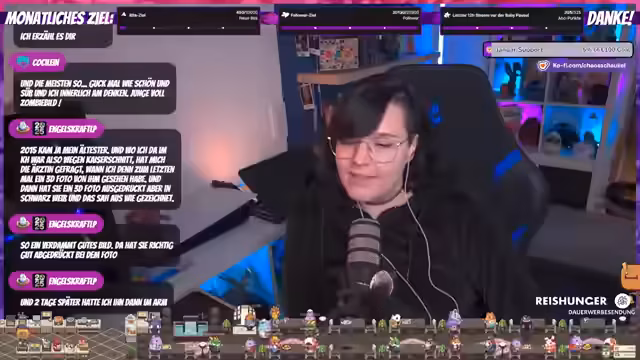 02:04:21Ein zentraler Thema ist die aktuelle Schwangerschaft. Die Streamerin erzählt von den verschiedenen Ultraschall-Terminen, ihre Vorliebe für Schwarz-Weiß-Bilder gegenüber den gruseligen 3D-Darstellungen und das Versäumnis, die neuesten Bilder per QR-Code herunterzuladen. Sie erwähnt den Wunsch ihres Mannes nach einer Tochter, was sie humorvoll als 'Wunscherfüllung' bezeichnet. Sie drückt ihre gemischten Gefühle aus: Freude über das kommende Baby, aber auch Panik und die Erkenntnis, dass sich vieles, wie YouTube und TikTok, durch die Schwangerschaft erledigt hat.