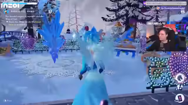 05:10:53Nach intensivem Grinden wird der XP-Balken für Maximus schließlich gefüllt, was die Fortsetzung der Hauptquest ermöglicht. Die Story führt Schneewittchen zur 'Wunschblütenfarm'. Ein neues, farbenfrohes und 'abgedrehtes' Gebiet namens 'Schimmergrund' wird freigeschaltet, das stark an Süßigkeiten erinnert. In diesem Bereich ist die Antagonistin Cruella mit ihrem Auto unterwegs, hinterlässt Spuren und stört die Umgebung. Das Gebiet bietet neue Sammelobjekte für Schneiderrezepte und ansprechende Dekorationsmöglichkeiten.
