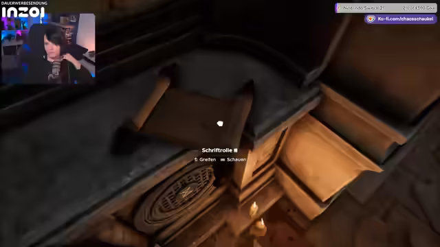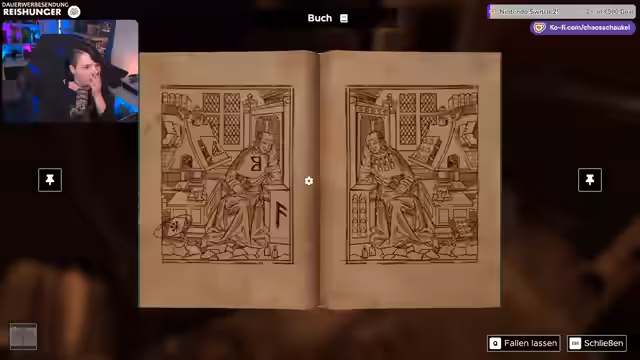 05:09:25Ein Spieler entwickelt eine Grundidee zur Lösung des Rätsels, indem die Positionen der Symbole zueinander auf der Schriftrolle interpretiert werden. Es wird festgestellt, dass die Angaben auf der Schriftrolle Richtungsgeber sind, die die Anordnung der Symbole im Raum bestimmen. Zum Beispiel muss ein Schild unterhalb eines Menschen sein. Nach erfolgreicher Lösung des Rätsels erhalten die Spieler eine neue Schriftrolle, die jedoch noch komplexer erscheint. Die Gruppe muss nun zwei einzelne Sterne, Monde, Sonnen und Äpfel in Kombination mit verschiedenen Strichen und Symbolen identifizieren. Die Anzahl der Sterne und die Art der Striche auf den Symbolen scheinen eine Rolle zu spielen. Die Spieler versuchen, die neuen Symbole den Gemälden und Objekten im Raum zuzuordnen, wobei die genaue Interpretation der Symbole und ihrer Anordnung eine große Herausforderung darstellt.