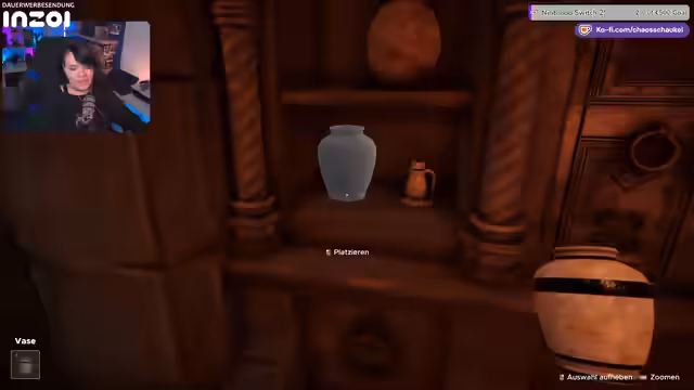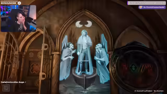 02:39:04Die Gruppe entdeckt, dass das Stehen an bestimmten Positionen blaue Flammen aufleuchten lässt, die für ein anderes Rätsel benötigt werden, das mit Vernunft, Geist und Gefühl in Verbindung steht. Es wird festgestellt, dass es mehrere Positionen gibt, die die Flammen aufleuchten lassen, und die Gruppe versucht, die logischste zu finden. Ein weiteres Rätsel dreht sich um Tierköpfe (Löwen und Steinböcke), die an einer Wand platziert werden müssen. Die genaue Ausrichtung der Köpfe wird durch die Streamerin beschrieben, die sich in der Kutsche befindet. Nach dem erfolgreichen Lösen des Tierkopf-Rätsels wird ein mechanischer Schlüssel gefunden, der eine weitere Kiste öffnet. In dieser Kiste befinden sich eine Trinkflasche, ein Spiegel und ein Zylinder. Die Gruppe vermutet, dass sie einen Vampir pfählen müssen, um weiterzukommen, und sucht nach dem Zugang zur Grabkammer.