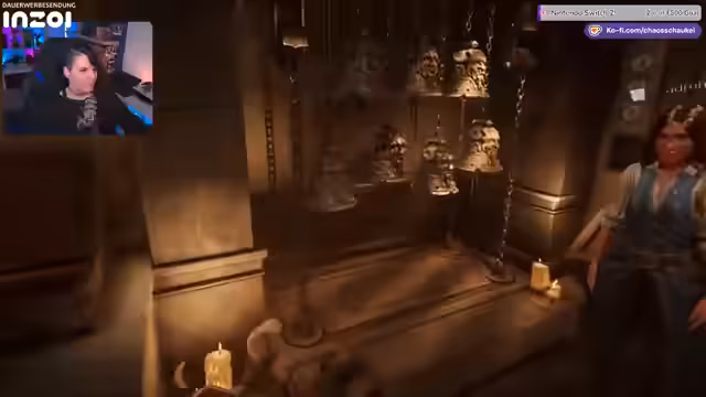 05:28:53Die Streamer stoßen auf ein mechanisches Drehschloss, das mit Symbolen versehen ist. Um dieses zu lösen, müssen sie Luftströme in einem anderen Raum mithilfe eines Weihrauchs sichtbar machen. Die Weihrauchgefäße zeigen die Richtung des Luftzugs an, der mit den Symbolen am Drehschloss korreliert. Gleichzeitig müssen sie Ahnenfiguren identifizieren, die 'sprechen' müssen, bevor die Nachfolgen. Nachdem sie den letzten Pfahl für das Schloss gefunden haben, können sie die Rätsel kombinieren und das Schloss aktivieren, um zum nächsten Teil der Geschichte vorzudringen.