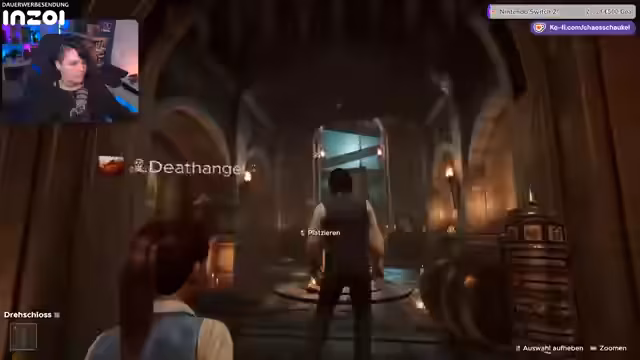 03:48:14Ein Mitglied der Gruppe muss den Raum verlassen, um die Details eines Bildes auf der anderen Seite des Kamins zu beschreiben, da es aus der Perspektive der Figur betrachtet werden muss. Es wird diskutiert, was Dracula auf der linken Schulter trägt – eine Spinne, ein Dämon oder nichts. Die Gruppe einigt sich auf die Perspektive der Figur und stellt fest, dass auf der linken Schulter eine Lampe zu sehen ist, obwohl die Auswahl nur Spinne, Dämon oder nichts bietet. Nach weiteren Beobachtungen werden Details wie ein Drachenkopf, eine Eule auf einer Säule, ein leerer Teller und Früchte identifiziert. Eine Frau hält ein Tier in der Hand, was schließlich zur Entdeckung eines Schlüssels führt. Dieser Schlüssel passt jedoch nicht zu der offensichtlichen Kiste im Raum, was die Gruppe zu der Annahme verleitet, dass es sich um den falschen Schlüssel handelt oder ein anderes Schloss gesucht werden muss. Die Diskussion dreht sich um mögliche Verwendungszwecke des Schlüssels, einschließlich eines Timers und eines Schlüssellochs im Kamin, wo der Schlüssel ursprünglich gefunden wurde. Schließlich wird ein Hinweis im Chat entdeckt, der besagt, dass auf dem Bart des Schlüssels Buchstaben zu finden sind, die das Wort „Deos“ bilden. Durch das Verschieben der Buchstaben am Schlüsselbart wird der Schlüssel passend gemacht und öffnet ein Schloss, was die Gruppe in die nächste Phase des Rätsels führt.