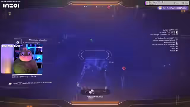 00:00:08Der Stream beginnt mit dem Einspielen von No Man's Sky. Der Streamer hat den Spielverlauf von gestern unterbrochen, um einige Speicherdinger zu farmen. Ziel ist es, die Quest der Expedition weiter voranzutreiben, insbesondere das Sammeln von Wissenssteinen für die Korvax-Forschung und das Erreichen von Wegpunkten, um die Quest freizuschalten. Der Fokus liegt auf dem Fortschritt im Spiel, wobei das Schiff explodieren könnte und wertvolle Fracht transportiert wird.