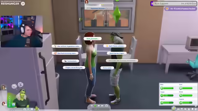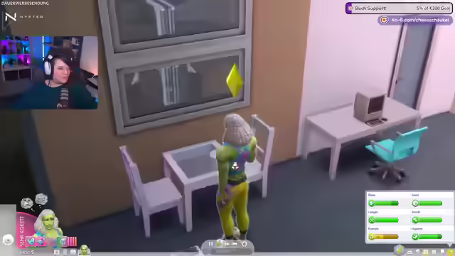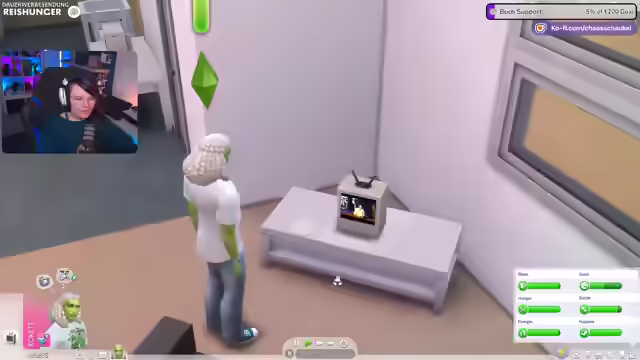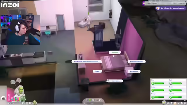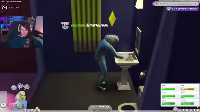 05:29:56Die Streamerin spricht über die Tanzfähigkeit, die erst mit dem Zeit-für-Freunde-Pack eingeführt wurde, und erwähnt, dass es mit dem Dschungel-Pack und möglicherweise dem Snoo-Snoopack weitere Tänze gab. Sie hält das Snoo-Snoopack für das uninteressanteste Pack, da es oft als Copy-Paste-Pack bezeichnet wird. Im Spiel wird ihre Sim erneut befördert und ist nun Tanzgruppenleiter, was sie überrascht. Sie muss nun bis in die Nacht arbeiten. Sie muss noch ihr Charisma verbessern. Sie bemerkt einen wütenden Sim und fragt sich, ob sie mit dessen Frau geschlafen hat. Sie plant, etwas Ordentliches zu essen und erinnert sich daran, dass man in Sims 4 mit normalen Berufen kein Geld verdienen kann und Maler, Schriftsteller oder Musiker werden muss, um reich zu werden. Sie erinnert sich an die DJ-Fähigkeit mit Zeit für Freunde, bei der man Trinkgeld verdienen konnte. Sie versucht, eine Frau für Techtel-Mächtel zu gewinnen, um sie schwanger zu machen, aber es klappt nicht sofort.