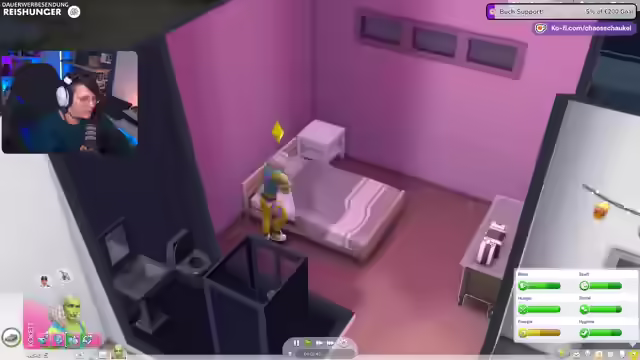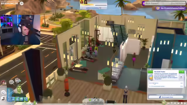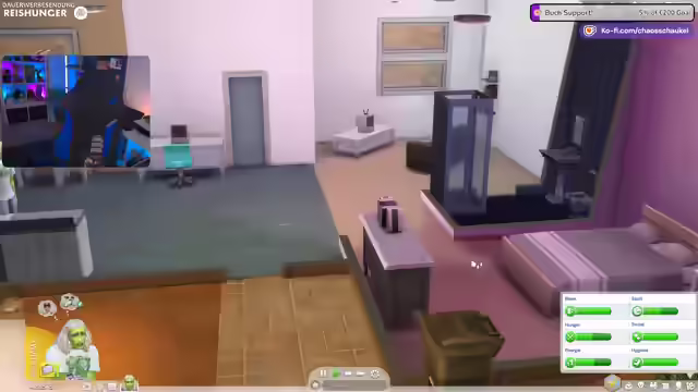 02:12:31Detlef zieht nach Oasis Springs in ein vorgefertigtes Haus. Direkt nach dem Einzug kritisiert der Streamer die aufdringliche Werbung für den Online-Shop mit Add-ons, die im Spiel integriert ist. Es wird festgestellt, dass das Spiel kostenlos ist, seit dem Mieter-Pack kein Geld mehr ausgegeben wurde und nun erkundet werden soll, was das Basisspiel zu bieten hat. Dabei wird die Grafikqualität bemängelt, insbesondere die Beleuchtung, die im Vergleich zu Sims 3 als Rückschritt empfunden wird. Es werden verschiedene Lampen ausprobiert, aber keine zufriedenstellende Lösung gefunden. Detlef bekommt einen PC und andere grundlegende Möbel. Der Streamer äußert den Wunsch nach mehr Konkurrenz für Sims 4, da es in der Lebenssimulation-Kategorie immer noch die Nase vorn hat. Es wird festgestellt, dass Detlef einen Job und soziale Interaktion benötigt. Die Spieleinstellungen werden angepasst, und es wird ein Radio hinzugefügt. Der Streamer hat Probleme, den Online-Modus zu deaktivieren und die erstellten Sims von Zuschauern herunterzuladen.