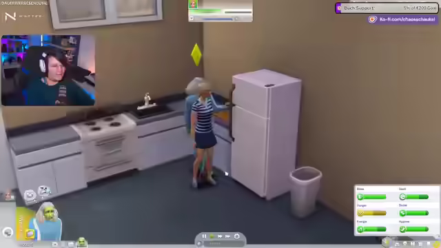 05:40:14Die Streamerin kocht Spaghetti und Erdbeerkuchen mit Robin. Sie bemerkt, dass Robin mitmacht und Eier rührt. Sie versucht, Robin zu schwängern. Sie findet es cool, dass man Sims einfach so schwängern kann, ohne romantisch anbandeln zu müssen. Sie fragt sich, ob das Essen etwas gebracht hat und ob sie irgendwo Schweggel oder Nippel gesehen hat. Sie erinnert sich daran, dass EA es nicht mochte, als Sims rauskam und die Mod rauskam, mit diesen Pixel wegmachen, weil das doch ein kinderfreundliches Game ist. Sie versucht erneut, Robin schwanger zu machen. Sie bemerkt, dass Otto Linde jetzt mit jemandem zusammen ist. Sie versucht, eine andere Frau schwanger zu machen. Sie möchte die 100 Baby Challenge nur verkehrt herum machen, indem sie alle Frauen schwängert, die sie findet, ohne sich um die Kinder kümmern zu müssen. Robin versucht, bei ihr einzubrechen, was sie nicht mag. Sie schlägt sich mit ihr und gewinnt den Kampf.