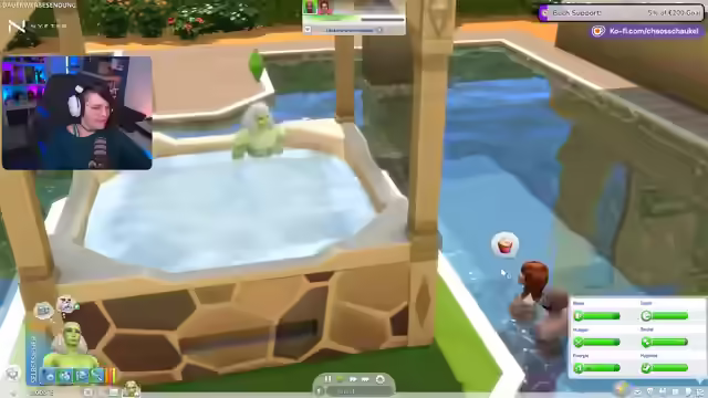 04:14:48Nach dem Kampf mit der Einbrecherin geht Detlef schlafen. Es wird festgestellt, dass das Base-Game sehr eingeschränkt ist, da die Sprecherin mit dem anderen Account ja alles hatte, bis zu Vermieten hoch. Es wird der Streamer-Modus gelobt, der die Musik von Sims 4 als gefährlich für Streamer einstufte. Detlef hat eine Heldentat vollbracht, weil er einen Kampf mit einer Eintraining gewonnen hat und eine Techtel-Mächtel-Partnerschaft eingegangen ist. Es wird sich gefragt, ob es Familienbindungen im Base Game gibt oder ob es nur mit diesem Draw Together gibt. Es gab immer wieder Vorbereitungs-Patches auch fürs Base Game, was die Add-ons angeht. Die meisten Veränderungen kriegt man wirklich für die Addons. Es wird beschlossen, heute in Splash zu gehen. Da mit Summer keine romantische Beziehung besteht, wird es keine Eifersuchtstramen geben. Es wird festgestellt, dass es keine Sauna im Base Game gibt, da man ein Addon besitzen muss. Es ist komisch ohne Jahreszeiten. Es gibt Sommer- und Winterklamotten im Base Game, aber es gibt halt keine Jahreszeiten, keine Temperatur. Es gab ja nicht mal Babys, sondern nur Wiegendinger und dann direkt Kinder. Mittlerweile gibt es ja Kleinkinder und Säuglinge. Die Diebe, Feuerwehr und Kindermädchen gab es in Sims 2 und Sims 3 schon. Es wird sich gefragt, ob es mittlerweile Wordpools im Base Game gibt. Tatsächlich gibt es einen Whirlpool, den man damals nur mit einem bestimmten Pack bekommen hat. Es wird versucht, den Pool kleiner zu machen, aber das klappt nicht. Es wird festgestellt, dass der Whirlpool wegen Move Objects nicht funktioniert.
