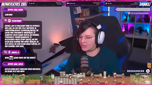 Ein neues Subscriber-Feature, das 'Not a Monday Café' mit Twitch-Integration, ermöglicht Interaktionen im Spiel. Die Streamerin spielt das kostenlose Sims 4 Base Game und integriert Zuschauer-Sims. Geplant sind Horrorspiele am Wochenende. Die Bewerbung für einen Twitch Startseiten-Slot wurde abgelehnt. Diskussionen über Addons und Urlaubspläne runden den Stream ab.