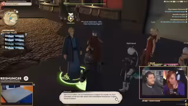 04:51:44Die Gruppe plant, einen Charakter namens Gyodo aufzusuchen, der sich als Stammgast im Gasthaus herausgestellt hat. Es wird vermutet, dass Stormblood sich dem Ende zuneigt, während die Gruppe sich auf den Weg macht, Gyodo zu finden, bevor sie zum Handelshaus zurückkehrt. Es wird überlegt, ob noch Zeit für Apex Legends bleibt, aber die Gruppe konzentriert sich auf die aktuelle Aufgabe. Diskussionen über das Aussehen von Gyodo, der als fischiger Typ beschrieben wird, kommen auf. Es wird eine Warnung im Chat bezüglich des Kugane-Turms und dessen Jumping-Puzzle erwähnt, was die Gruppe dazu anregt, diesen zu erklimmen, bevor sie mit der Hauptstory fortfährt. Es wird betont, dass in Kugane strenge Gesetze herrschen und bei Problemen sofort zum Handelshaus zurückgekehrt werden soll. Die Gruppe bereitet sich darauf vor, Gyodo zu treffen, wobei Tateru im sicheren Abstand bleibt, falls Gyodo unlautere Absichten hat.